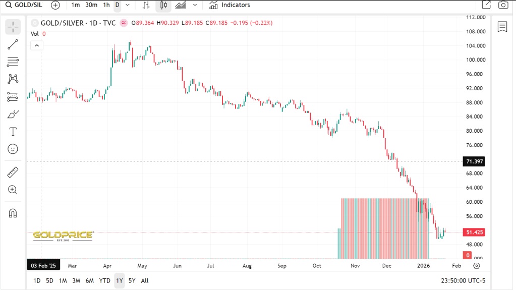 On 20-01-2025, the price of salesforce has been dropping. currently 6% below my average purchase price. The pain was definitely felt as the weightage is too high. A goal I have been actively pursuing which is to reduce the weightage not by selling off yet but by increasing the overall portfolio size. The gold to silver ratio (GSR) is currently at